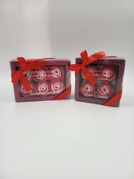 Vidutinė dėžutė su muilo gėlėmis ir suvenyru