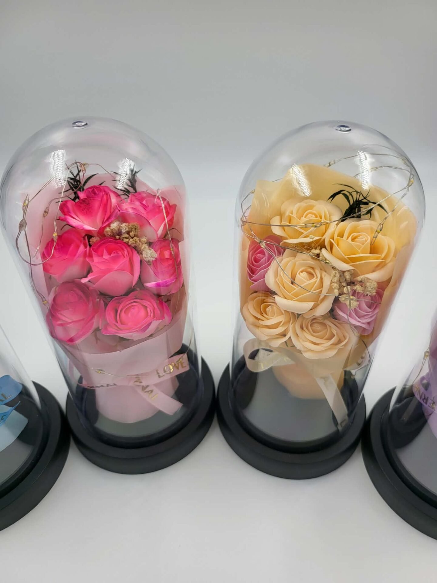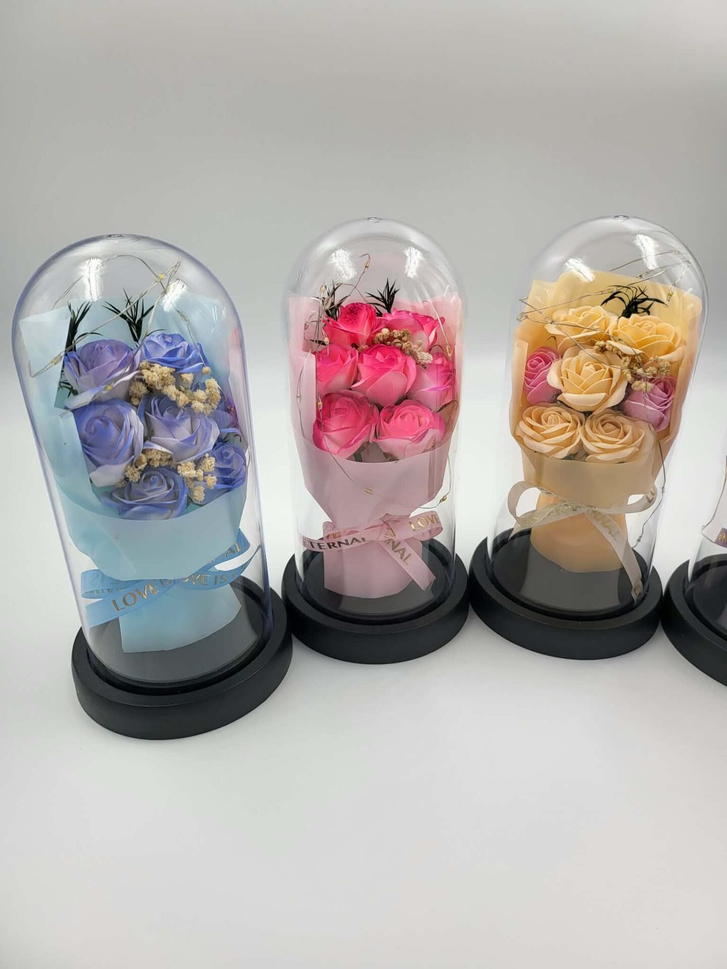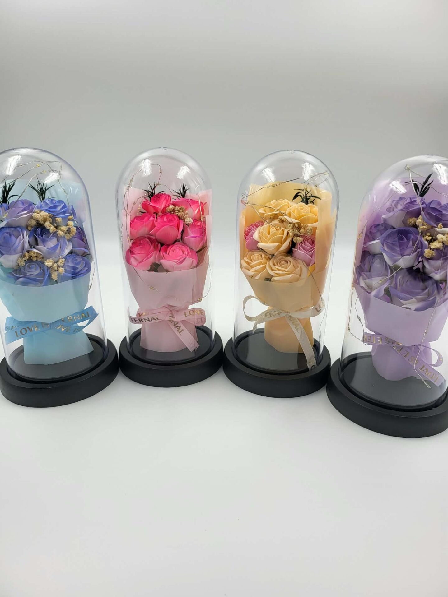 Muilo rožių puokštė gaubte su LED